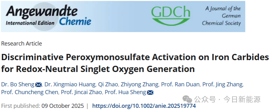 近日,我校与中国科学院化学研究所盛桦团队合作在高级氧化水污染处理技术研究领域取得重大突破。相关研究成果以“Discriminative Peroxymonosulfate Activation on Iron Carbides for Redox-Neutral Singlet Oxygen Generation”为题,于2025年10月9日在国际化学期刊《Angewandte Chemie International Edition》上发表。我校教师盛波博士为论文第一作者,并与合作单位专家共同担任通讯作者。该期刊连续多年位居化学类期刊前列,是“自然指数”(Nature Index)收录期刊,被学术界视为化学领域“顶刊”标杆之一。