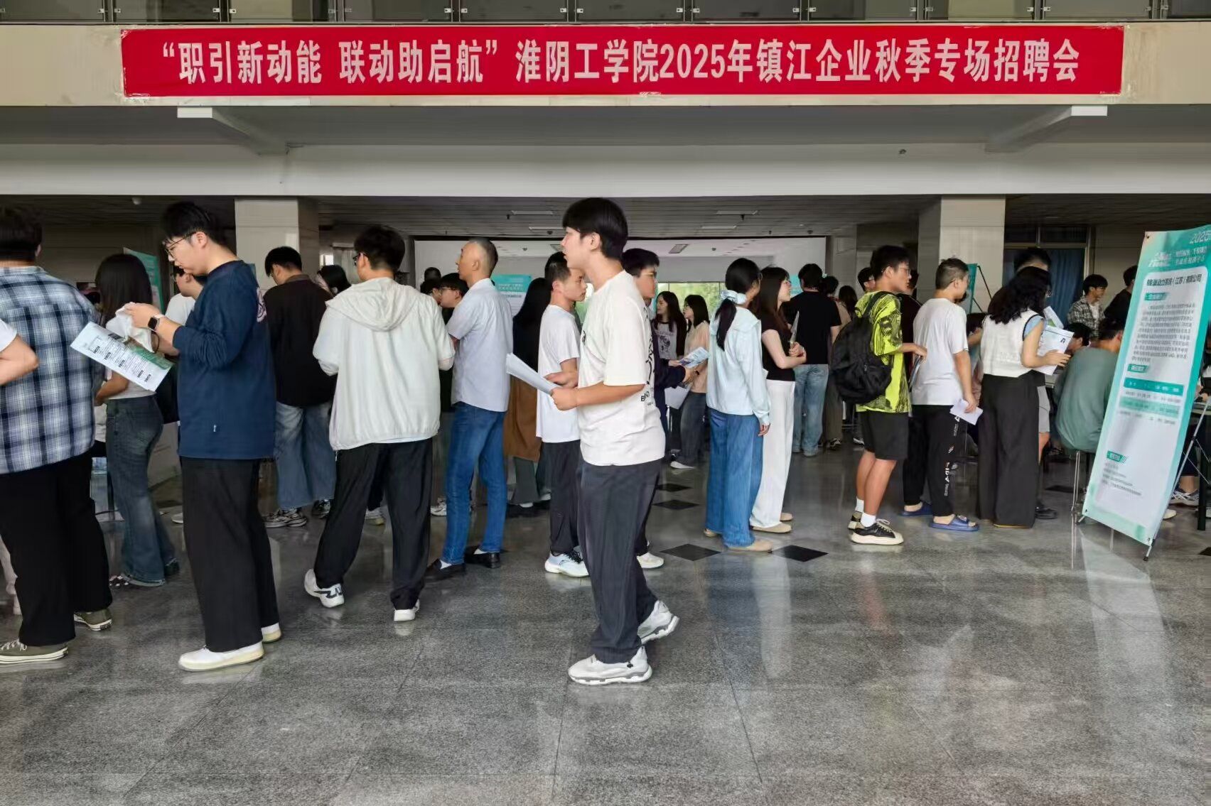 本次招聘会由我校与镇江市人力资源和社会保障局共同举办,突出“服务新质生产力 校地强链促就业”的特色,邀请到大津重工、蜂巢动力、伊顿母线、威腾电气等22家企业前来招聘,共提供机械、电气、自动化、土木工程、计算机、外语等近600个工作岗位。