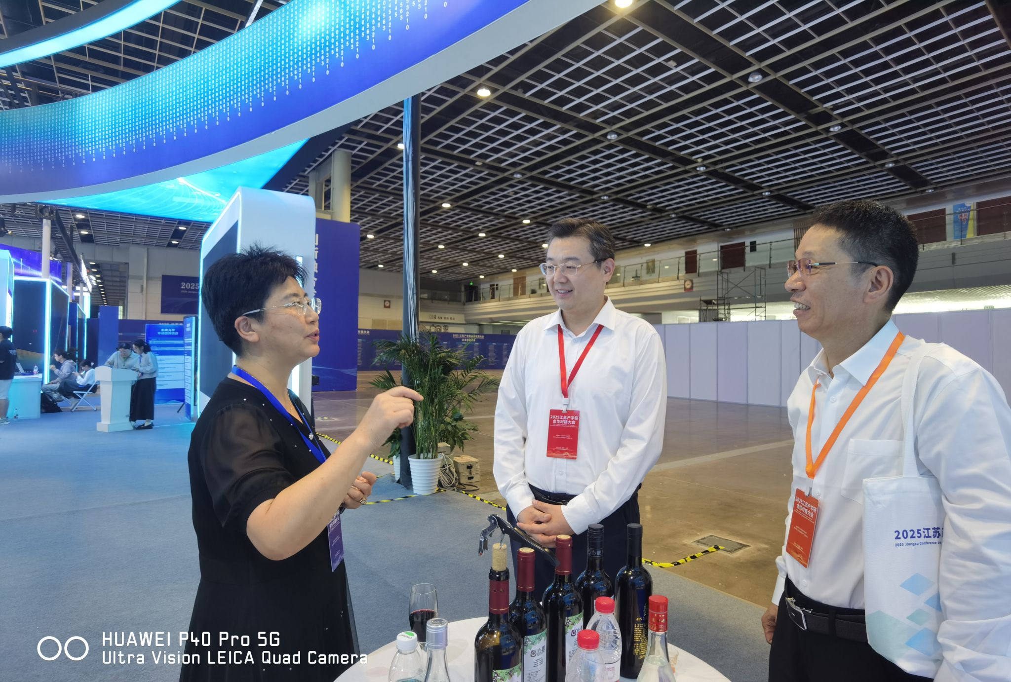 大会期间,我校重点展示了近年来在食品精深加工和光储充电一体化等技术领域取得的成果。在高校科技成果发布及对接专区,我校展位吸引了众多地方科技主管部门和企业的关注。其中,由我校生命科学与食品工程学院、农学院的陈晓明教授团队自主研发的新型果酒加工技术,以其绿色低碳的工艺、对农产品的高附加值转化能力以及广阔的市场前景,成为会场焦点之一。多家果品深加工企业、生物科技公司与我校团队进行深入洽谈,并初步达成了多项合作意向。