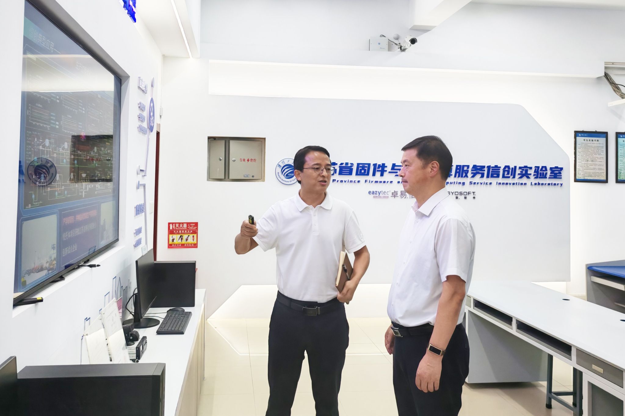会前,李金平一行参观了学校省固件与云计算服务信创实验室。