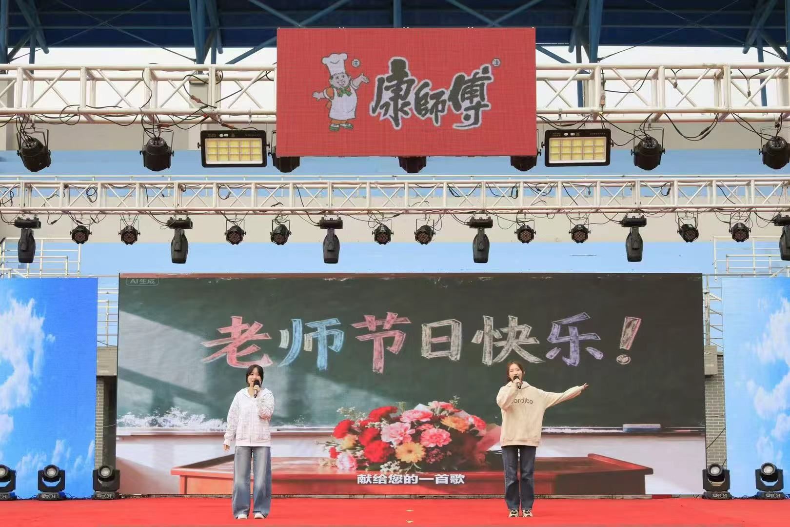 校文化艺术中心与大学生艺术团联合呈现歌舞《献给老师的歌》,以真挚旋律与灵动舞姿诠释师恩难忘;原创歌舞《淮安的安是什么》,通过艺术表达探寻城市文化底蕴,引发在场师生的共鸣。